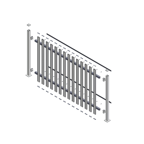 - Connect the top and bottom 40x40 rail with the 2 brackets to the internal centre or edge of your post or pier on both sides. Use the speed sheet cutting listing we provide to know while hole the first slat goes into. NOTE: It may not be the first visible hole