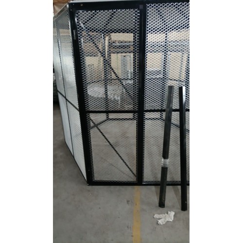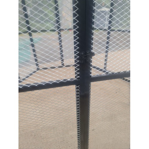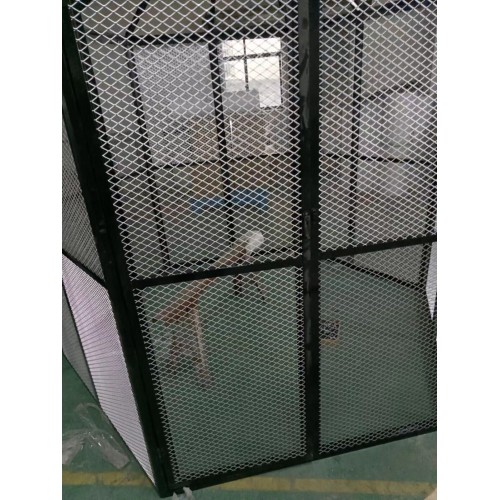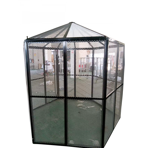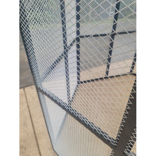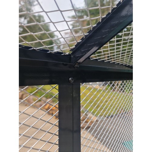Walls: Aluminum Rigid mesh panels with 20x30mm diagonal holes (see image) so no birds can get out