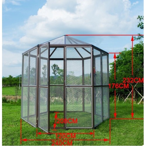 This practical and spacious cage is a perfect choice as an outdoor enclosure for your small and large birds. This hexagonal design is our own style that we made for our own birds and decided there was a gap in the market for stylish looking large bird aviaries.