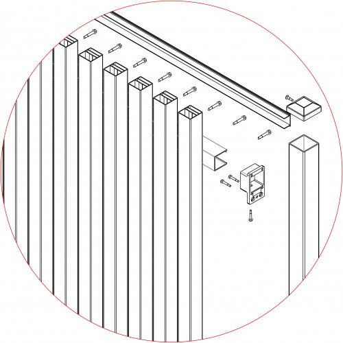 • Connect the top and bottom 40x40 rail with the 2 brackets to the internal centre or edge of your post or pier on both sides.  Use the speed sheet cutting sheet to know while hole the first slat goes into.  NOTE: It may not be the first visible hole