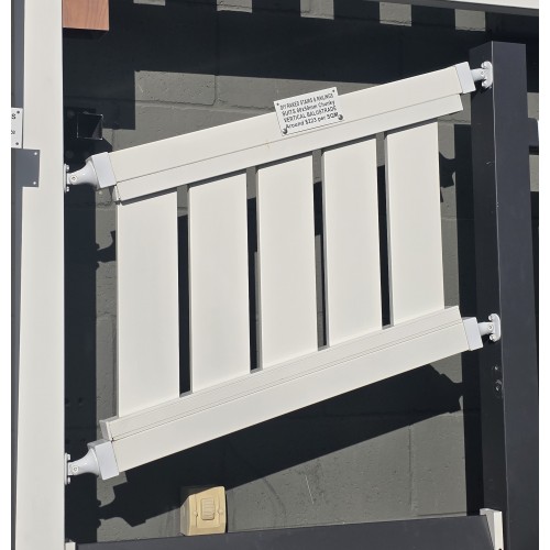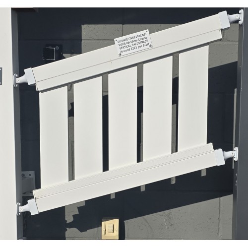 The listed price is an estimate of vertical stair fencing in Gloss white per Square Metre with an 80mm x 50mm top and bottom Rail. Supplied cut to size then you DIY the angle. When you cut the slats to fit in the channels you wont sit the raw edge of the slats.