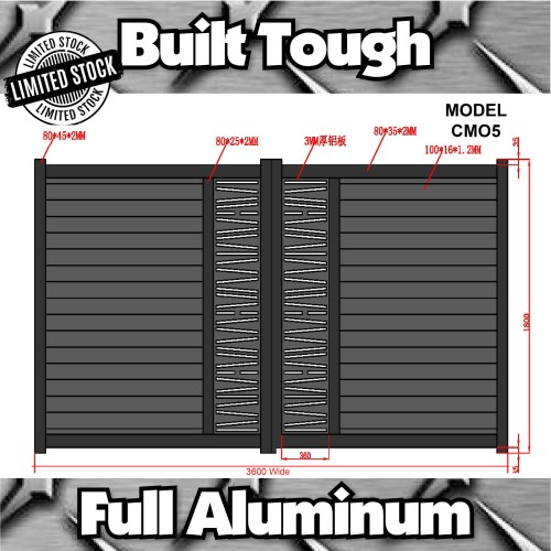 Entrance Gate Set 3600 x 1800mm for Driveways Home Modern Style - CM05 Gloss Black