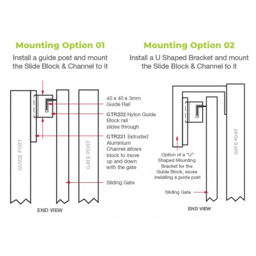 Note:  You have to install a rear post to hold the Nylon Block C-Channel and most times there is a post 3/4 way to all the way to top height of the gate but needs to match up to where you install the Z-Channel.  Your rear post should sit out around 80mm from the rear of gate.  Either install a Full post or DIY a U bracket (See images)