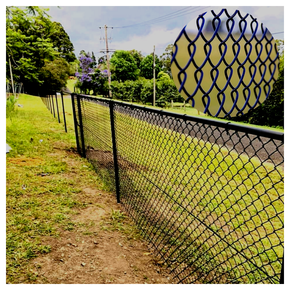 BLACK PVC Chainlink Fences20m rolls at 900 high &nbs..Corner post 60mm for Chain Mesh fence - PICKUP POsts CHainlink Chain Link