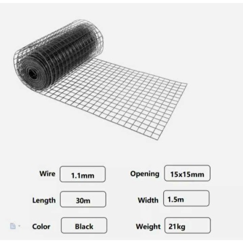 30m x 1500mm roll – 1.1mm Black Gal wire - 15x15mm Holes