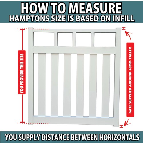 - Note the size you give us is between the Horizontals (this is the infill parts that is your real gate). The side frame posts make the gate around 40mm higher than what you give us. There is an image in the photos that explain that