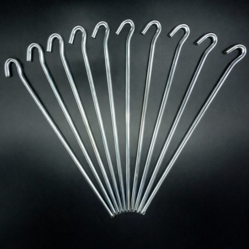 • GALVANISED pegs for the base of rolled mesh.