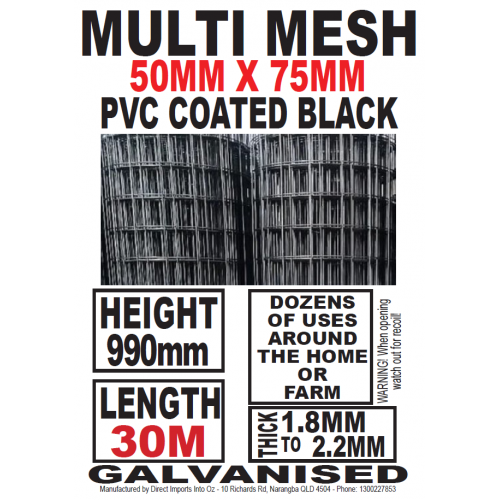 30m x 990mm roll – 1.8mm Black Gal wire - 50x75mm Holes