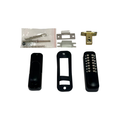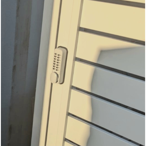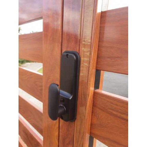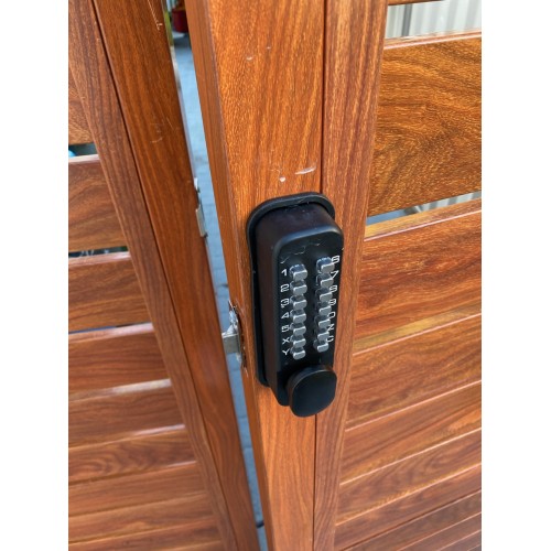 Comes in Black or Silver.  No batteries and you manually code the 2 to 4 digit code into this waterproof metal lock. These are custom to us so that it sits in the 50mm gate frames we use. You will need to drill a 25mm hole into frame. Needs 10mm gap so make sure you adjust gate frame width.