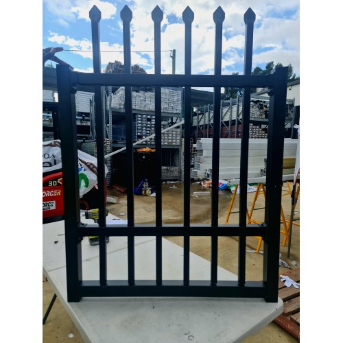 For example a typical 1200 wide x 1800 high spike top security gate with the 95mm gaps and built Vertical bars and in Black, white or Dark grey would be $374.  That works out at $173 per SQM. This is a Cut to Size then flat packed as a DIY kit