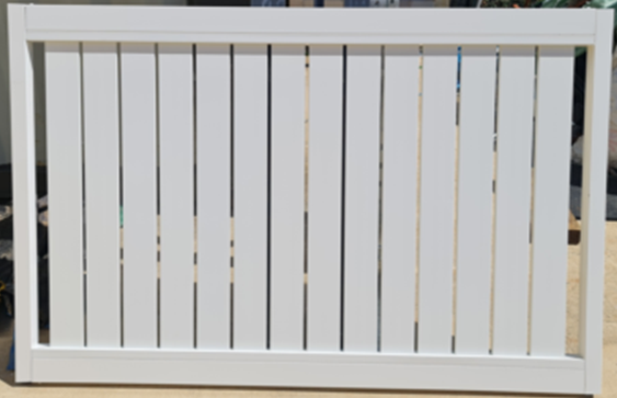 FENCE PANELS WHERE THE SLATS ARE A COMBO OF 100 & 38MMFence panels and gates that are fully cust..Hamptons 80x50mm Hand Rail - White Aluminium Powder Coated - Custom lengths