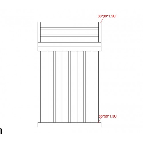 Using 100mm slats on the top and bottom. You choose the gaps between the slats at either 10mm or 16mm or 40mm. You choose how many Horizontal slats you want on top and the balance of your custom height will be the vertical base. The horizontal slats will slide into side channels. Those side channels will connect to your posts. Brackets are used on bottom rail & the top is supported by the 30x30mm channels on the side.