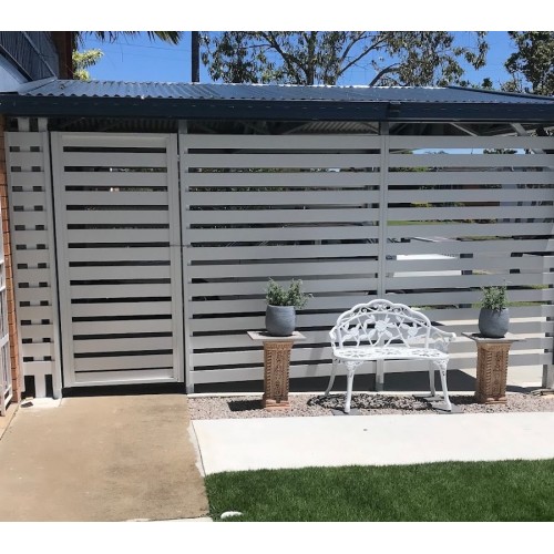 For example a typical 2700wide x 1400 high screen or fence with 16 mm gaps and built horizontal slats and in Black would be $610. That works out at $161 per SQM. We DO NOT install at your location and the pickup is from Narangba, or delivery to most parts of Australia mainland (No TAS or WA)