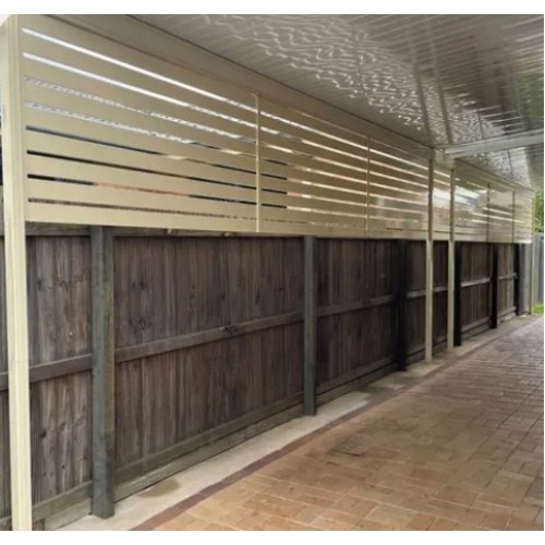 - If you're keeping the screen at the top only for sun protection, etc. and generally under 1200mm in overall height then you can attach a 50mm dropper post onto your top carport frame. Then say a 5000mm panel can be cut into 2 panels with both meeting into the sides of this dropper. Search dropper post on this website.
