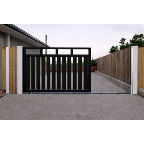 HAMPTONS Sliding Gates WHERE THE SLATS ARE A COMBO OF 100MM at the BASE and the top 195mm are square Tubes Centred