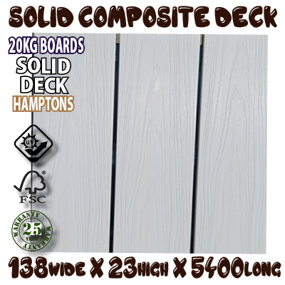 138mm Honorwood SOLID COMPOSITE DECKING - HAMPTONS White - Per Lineal Metre