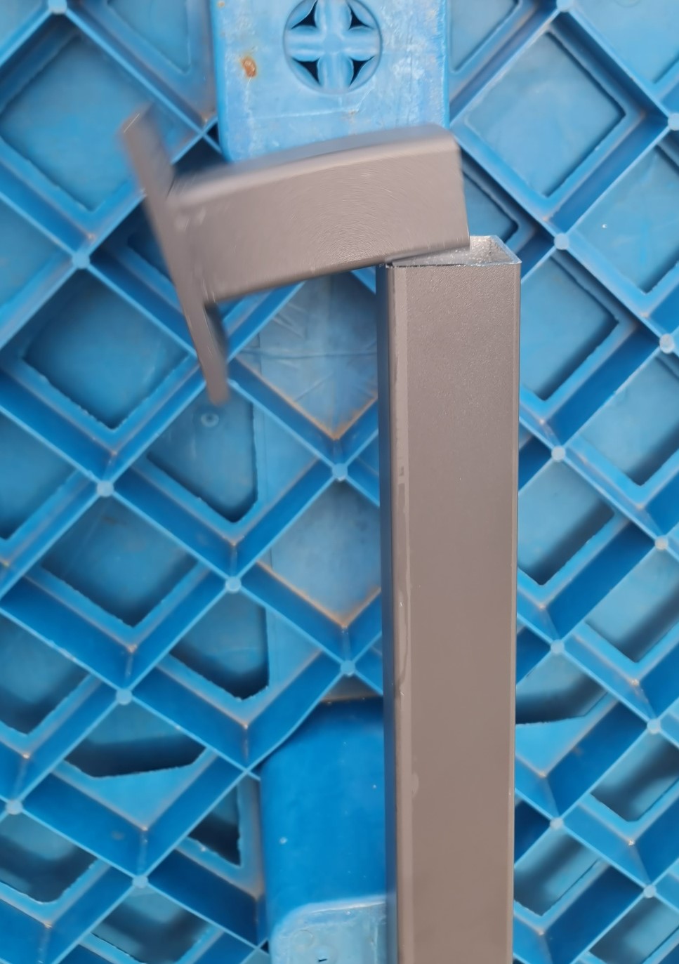 Small bracket and Box Post that is normally used to hang a screen from a header in roof which may on..Dropper Post PICKUP - 50x50 bracket and up to a metre of box section in BLACK or WHITE or DARK GREY or Cream or light grey