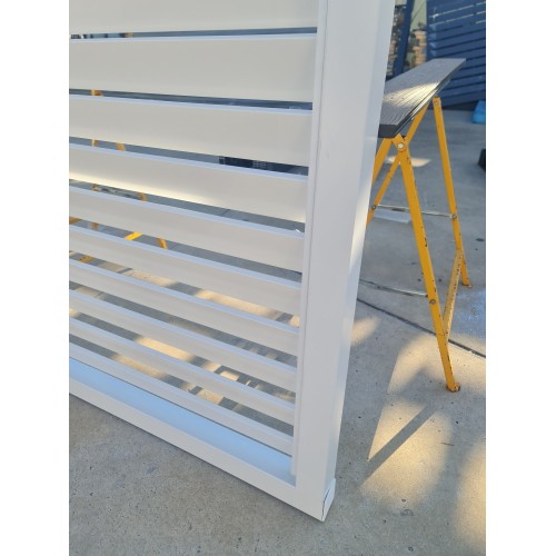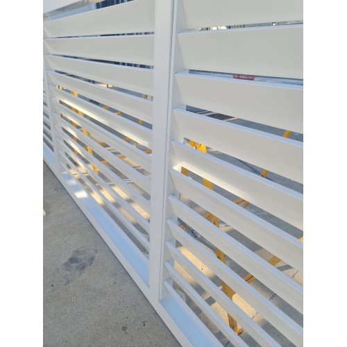 For example a typical Horizontal sliding gate 5000 wide x 1400 high with 24mm air flow gaps and built Vertical slats and in Black or White would be $1964. That works out at $281 per SQM.